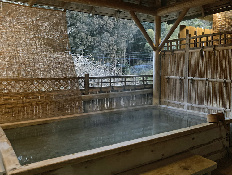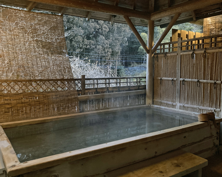 法師温泉のシンボルになつている、鹿鳴館風大型湯殿「法師之湯」。きっと誰もがその写真を一度は目にしたことがあるのではないかと思うこの温泉、実は自噴泉で、底に敷かれた玉砂利の下から、ポコポコとお湯が沸いている。この「法師之湯」があるのが法師温泉長寿館で、明治8年に開設された歴史ある宿だ。玄関横の囲炉裏から客室の障子まで、歴史と趣のある建物が大切に使われていて、旅情を掻き立ててくれる温泉。それが法師温泉である。